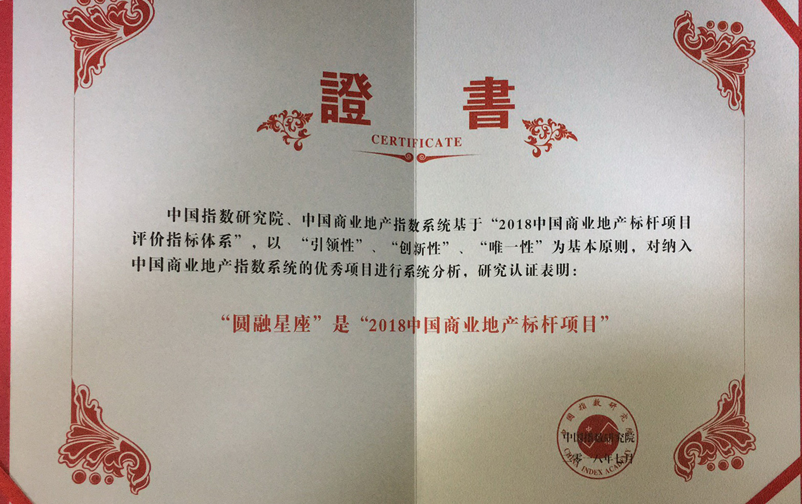 圓融星座獲評為“2018中國商業(yè)地產(chǎn)標桿項目”