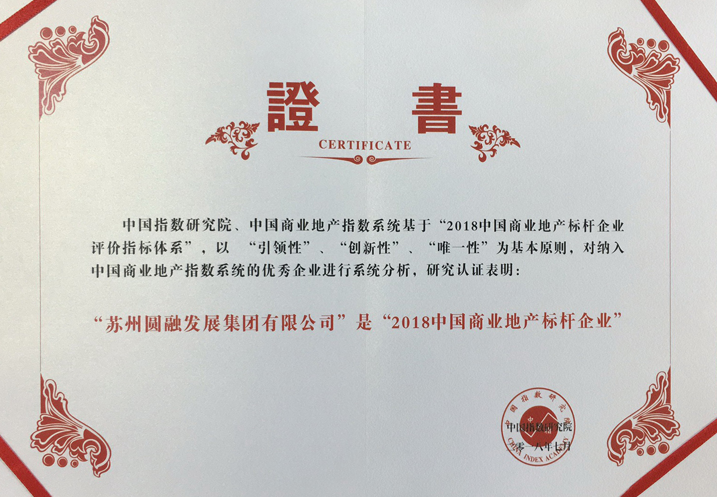 新建元圓融發(fā)展獲評“2017中國商業(yè)地產(chǎn)公司品牌價(jià)值TOP10”