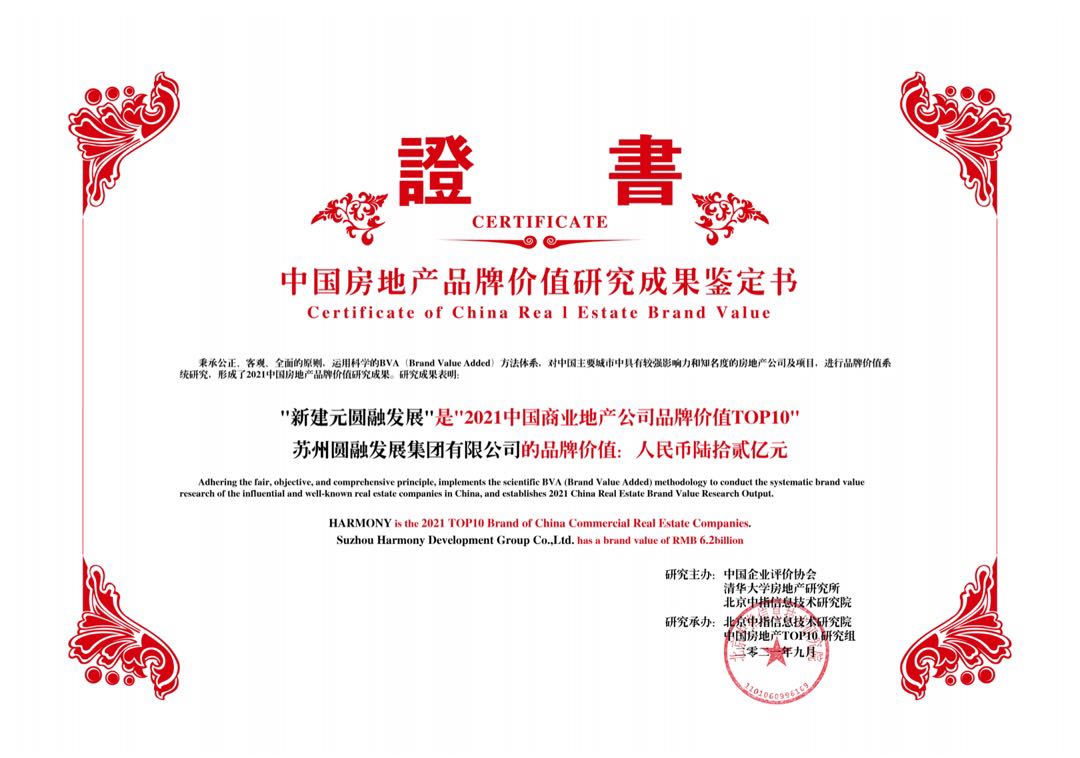 新建元圓融發(fā)展獲評“2021中國商業(yè)地產(chǎn)公司品牌價(jià)值TOP10”