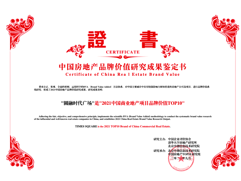 圓融時(shí)代廣場(chǎng)獲評“2021中國商業(yè)地產(chǎn)項目品牌價(jià)值TOP10”