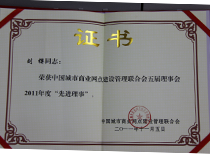 2011年集團總裁劉櫻榮獲中國城市商業(yè)網(wǎng)點(diǎn)建設管理聯(lián)合會(huì )五屆理事會(huì )2011年度先進(jìn)理事稱(chēng)號