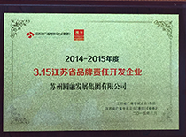 新建元圓融發(fā)展獲評“2014-2015年度3.15江蘇省品牌責任開(kāi)發(fā)企業(yè)"