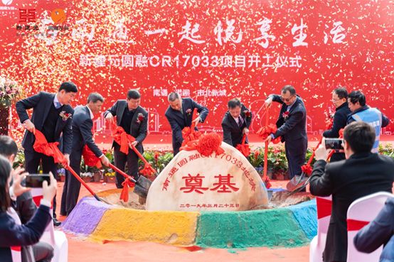 新建元圓融和各參建單位領(lǐng)導代表共同為圓融CR17033地塊培土奠基,喻示著(zhù)圓融CR17033地塊工程建設正式啟動(dòng)。