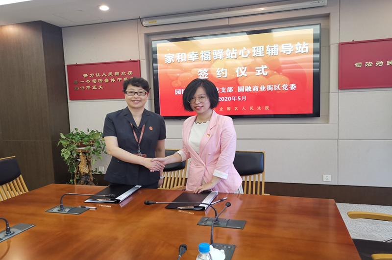 5月26日上午,蘇州工業(yè)園區人民法院與新建元圓融商業(yè)街區黨委舉行共建簽約儀式,標志著(zhù)雙方黨建合作項目“‘家和’心理輔導站”正式落地新建元圓融商業(yè)街區黨群服務(wù)中心。