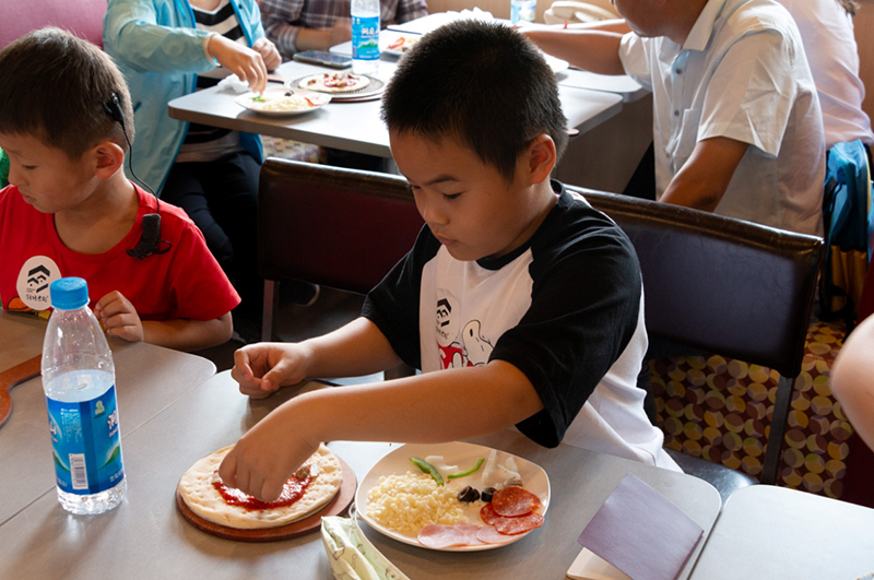 臨近中午,孩子們來(lái)到“棒約翰”,準備大顯身手,自食其力。志愿者一早準備好了面胚和配料,孩子們和家人一起互動(dòng),親手制作pizza,并親嘗了自己的勞動(dòng)成果。同時(shí),“川福樓”和“饞源”兩家愛(ài)心商戶(hù),送上了精美的餐點(diǎn),讓孩子們在濃濃的關(guān)懷和愛(ài)意中享受了一頓精美的午餐。