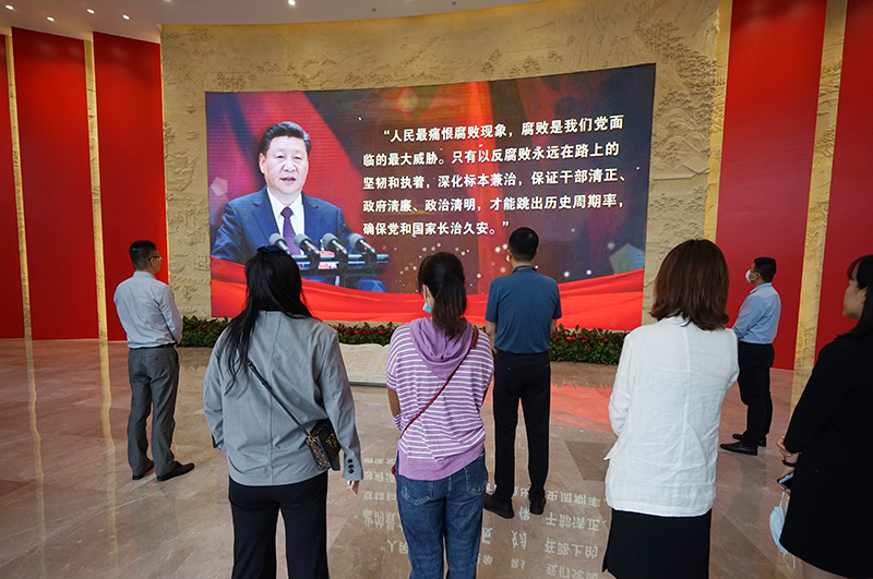 風(fēng)廉政警示教育基地總面積1900平方米,共8個(gè)展廳,3塊功能區域,全方位運用聲光電等多媒體技術(shù)并結合圖文實(shí)物,集中展示了黨的十八大以來(lái)蘇州市查處的違法違紀典型案件,一段段深刻翔實(shí)的圖文介紹、一個(gè)個(gè)觸目驚心的案例剖析、一句句發(fā)自肺腑的懺悔反思發(fā)人深省,切身感受違法違紀行為給社會(huì )、家庭、個(gè)人帶來(lái)的巨大傷害。以案明紀、以案釋法,這一堂深刻而鮮活的廉政警示教育課震撼著(zhù)每一位黨員的心底。