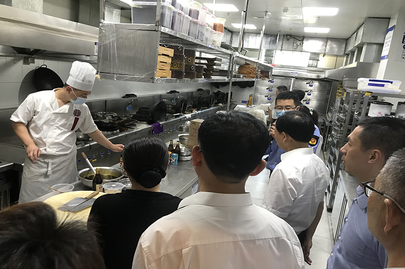 檢查組在區市場(chǎng)監管局等部門(mén)人員陪同下,采取現場(chǎng)實(shí)地查看、查閱資料等方式,分別從食品生產(chǎn)、餐飲服務(wù)、食品銷(xiāo)售等環(huán)節對圓融堤調項目?jì)冉瓧鳚O火、品尚火鍋等食品安全示范店進(jìn)行現場(chǎng)檢查,聽(tīng)取了相關(guān)負責人關(guān)于各店生產(chǎn)經(jīng)營(yíng)狀況、食品安全保障落實(shí)情況的匯報,重點(diǎn)對食品進(jìn)驗貨票據、原材料控制、食品制作過(guò)程、營(yíng)業(yè)場(chǎng)所衛生以及從業(yè)人員是否辦理健康證等方面進(jìn)行了全面檢查。