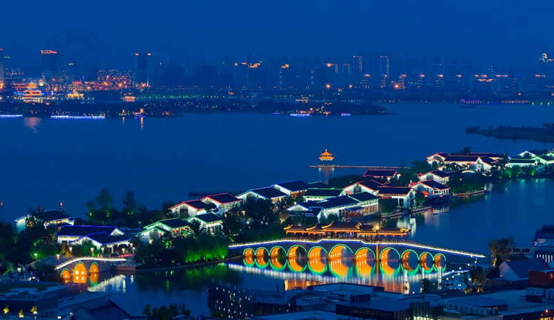 白日里觀(guān)仿古廊橋、石橋串聯(lián)出水鄉神韻;夜晚賞火樹(shù)銀花勾勒出建筑物別致造型。廊橋庭院鱗次櫛,兩岸高樓林立流光溢彩,為游客和市民帶來(lái)一場(chǎng)極致的視覺(jué)享受。