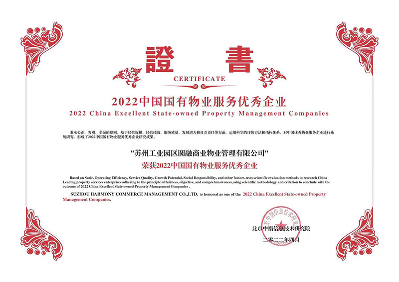 4月26日,由北京中指信息技術(shù)研究院主辦,北京中指信息技術(shù)研究院中國房地產(chǎn)TOP10研究組、中國物業(yè)服務(wù)指數系統承辦的“2022中國物業(yè)服務(wù)百強企業(yè)研究成果發(fā)布會(huì )暨第十五屆中國物業(yè)服務(wù)百強企業(yè)家峰會(huì )”在北京隆重舉行。會(huì )上發(fā)布了2022中國物業(yè)服務(wù)百強企業(yè)最新研究成果。新建元控股集團旗下圓融商管公司憑借專(zhuān)業(yè)的服務(wù)能力和卓越的服務(wù)質(zhì)量獲得高度認可,榮膺“2022中國物業(yè)服務(wù)百強企業(yè)”、“2022中國國有物業(yè)服務(wù)優(yōu)秀企業(yè)”。