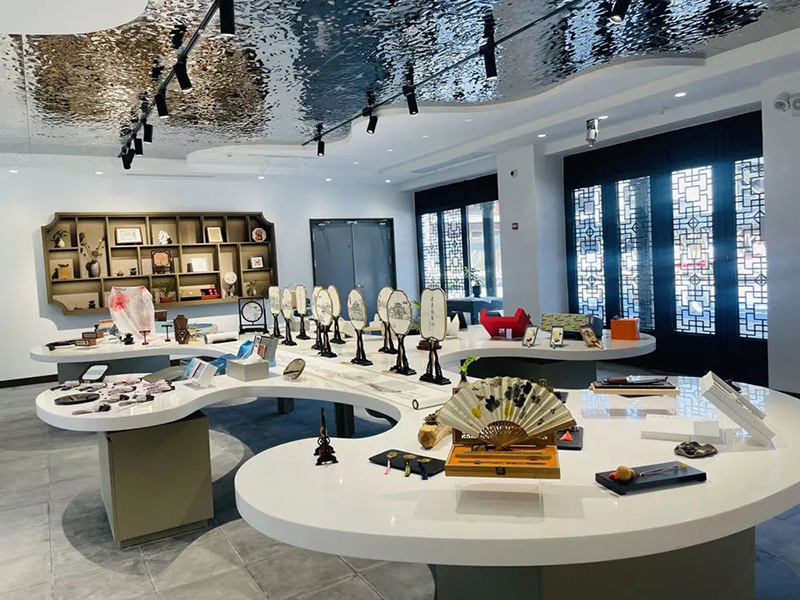 它是一處商業(yè)街區,匯聚了來(lái)自蘇州的書(shū)香府邸旗艦店、宿遷本地特色店“金輝盛筵”、主打生猛海鮮的“漁舟村”、美味地道的蘇幫菜館“小園樓”等特色商戶(hù);它是一處園林景區,有“皺瘦漏透”的太湖石翼云峰、寓意長(cháng)壽的涵碧軒山花、仿若仙境的蓬萊庭院以及粉墻黛瓦、飛檐翹角、壘石堆山、小橋流水等;它是一處文化社區,有老字號中醫館雷允上、凝結蘇宿情誼的蘇宿工業(yè)園區城市展覽館、展示“百匠賦新”的蘇工蘇作館,匯集了蘇州最具代表性的燈彩、核雕、宋錦、明式家具、船點(diǎn)、蘇繡等手工藝作品。