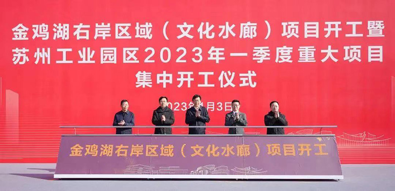 1月3日,在金雞湖右岸區域(文化水廊)項目開(kāi)工暨蘇州工業(yè)園區2023年一季度重大項目集中開(kāi)工儀式上,由新建元圓融參與開(kāi)發(fā)建設的蘇州中環(huán)廣場(chǎng)、蘇州文華東方酒店、蘇州當代美術(shù)館等金雞湖右岸重點(diǎn)項目集中開(kāi)工,奏響高質(zhì)量發(fā)展“最強音”,展示新年新氣象,全力沖刺“開(kāi)門(mén)紅”。