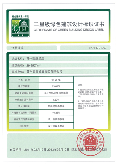 圓融星座通過(guò)國家二星級綠色建筑設計標識認證