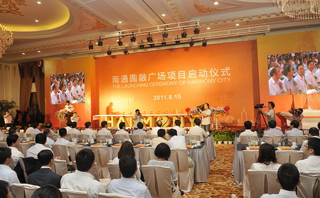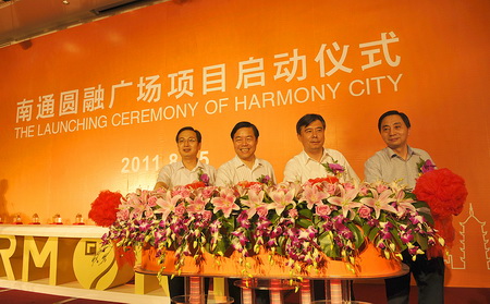 2011年8月15日,南通圓融廣場(chǎng)啟動(dòng)儀式隆重舉行。圓融集團旗下南通圓融房地產(chǎn)開(kāi)發(fā)有限公司強勢進(jìn)駐南通,大型現代化、國際化都市綜合體杰作——南通圓融廣場(chǎng)成功啟動(dòng)。南通市、蘇州市領(lǐng)導,圓融集團董事長(cháng)趙志松先生、總裁劉櫻女士等出席了當天的活動(dòng)。當天出席簽約儀式的品牌商家代表除金鷹國際集團和江蘇廣電幸福藍海集團外,同時(shí)還有來(lái)自國際、國內的知名品牌商家:韓國KB銀行、瑞貝庭酒店、哈根達斯、星巴克、Costa、必勝客、卡通尼、BHG、順電 、銀樂(lè )迪等共十余個(gè)品牌的商家代表也出席了當天的簽約儀式。