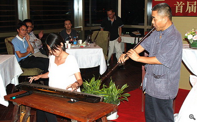 除朗誦詩(shī)歌外,詩(shī)會(huì )還邀請到了吳門(mén)琴派傳人裴金寶先生及其弟子楊茹雅進(jìn)行現場(chǎng)古琴表演,為詩(shī)會(huì )助興?!读枷?、《梅花三弄》等名曲將本次詩(shī)會(huì )推向了高潮。詩(shī)會(huì )期間,詩(shī)人們還在現場(chǎng)即興潑墨題詞以及賞月活動(dòng)。整個(gè)詩(shī)會(huì ),在濃濃的詩(shī)情中圓滿(mǎn)結束。