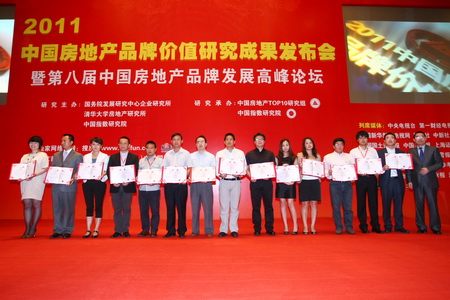9月9日,2011中國房地產(chǎn)品牌價(jià)值研究成果發(fā)布會(huì )暨第八屆中國房地產(chǎn)品牌發(fā)展高峰論壇在北京舉辦。全國200多家房企代表及媒體精英參會(huì ),共同探討當前市場(chǎng)形勢下房地產(chǎn)品牌企業(yè)發(fā)展之路,構建“地產(chǎn)品牌生態(tài)圈”。