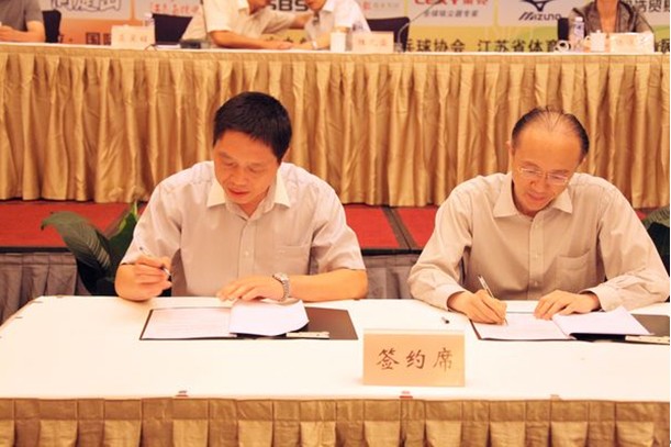 新建元·圓融2013中國乒乓球公開(kāi)賽(蘇州)新聞發(fā)布會(huì )于7月18日在蘇州新城花園酒店舉行??偩制褂鹬行母敝魅侮懺?、市政府副秘書(shū)長(cháng)陸俊秀出席并講話(huà),市體育中心主任曹煦與圓融集團常務(wù)副總裁沙勇簽署冠名贊助合同。會(huì )上,組委會(huì )還向圓融集團代表頒發(fā)了紀念杯和紀念牌。