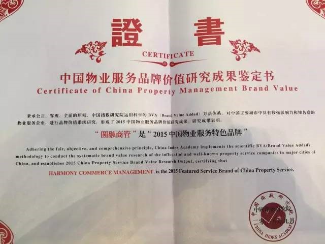 在品牌建設方面,圓融集團以“前瞻性、創(chuàng )新性”的企業(yè)理念和“第一性、唯一性”的精品戰略,強化商業(yè)地產(chǎn)投資和運營(yíng)的核心競爭力建設,品牌影響力持續提升。圓融集團于2011年、2012年、2013年、2014年、2015年連續五年被評為“中國商業(yè)地產(chǎn)公司品牌價(jià)值TOP10”企業(yè),這標志著(zhù)圓融集團企業(yè)及項目的品牌地位與影響力不僅深受消費者認可,也獲得了社會(huì )與行業(yè)的高度評價(jià)。
