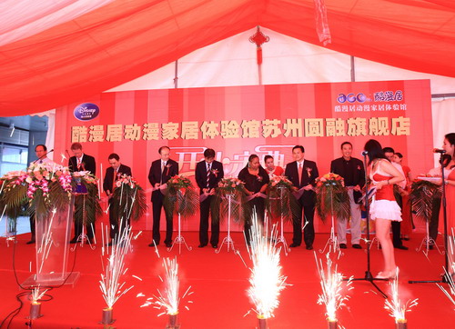 7月1日,圓融時(shí)代廣場(chǎng)生活休閑區,集美國迪士尼、美國時(shí)代華納、美國孩之寶等世界級動(dòng)漫品牌為一體的一站式、樂(lè )園式、體驗的酷漫居動(dòng)漫家居體驗館蘇州首家店正式對外營(yíng)業(yè),蘇州工業(yè)園區工委副書(shū)記楊建中、中新集團副總裁吳天仁、圓融集團副總裁沙勇和來(lái)自華特迪士尼大中華區董事總經(jīng)理Stanley Cheung等共同參加了“酷漫居動(dòng)漫家居體驗館”開(kāi)業(yè)揭幕儀式。
